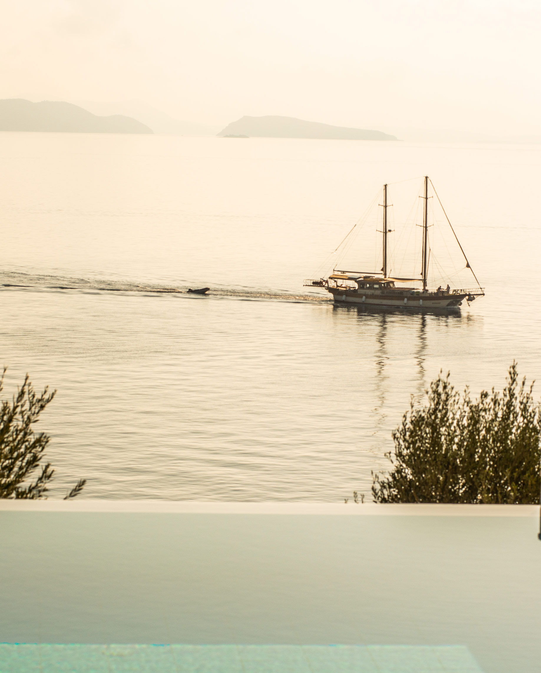 A fabulous seaside house with magnificent views of the water, the boats and neighboring islands. It feels as if you are on the bow of a ship, and could swim from the infinity pool straight into the sea below.
